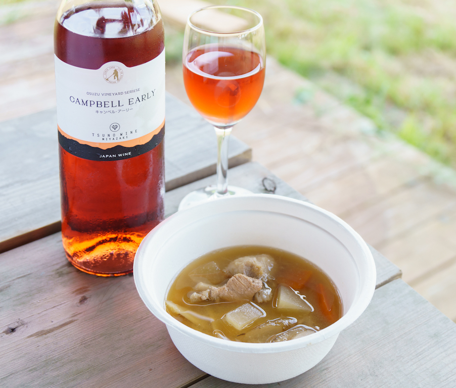 ふるまいの豚汁はキャンベルアーリーロゼと合わせると