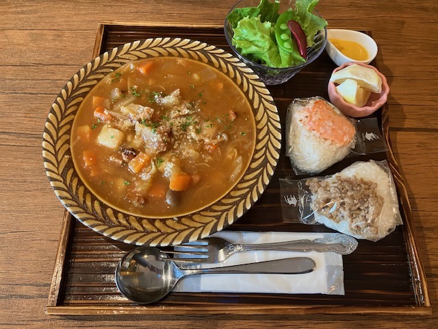 今日はミネストローネとおにぎりのセット1500円を頼んで